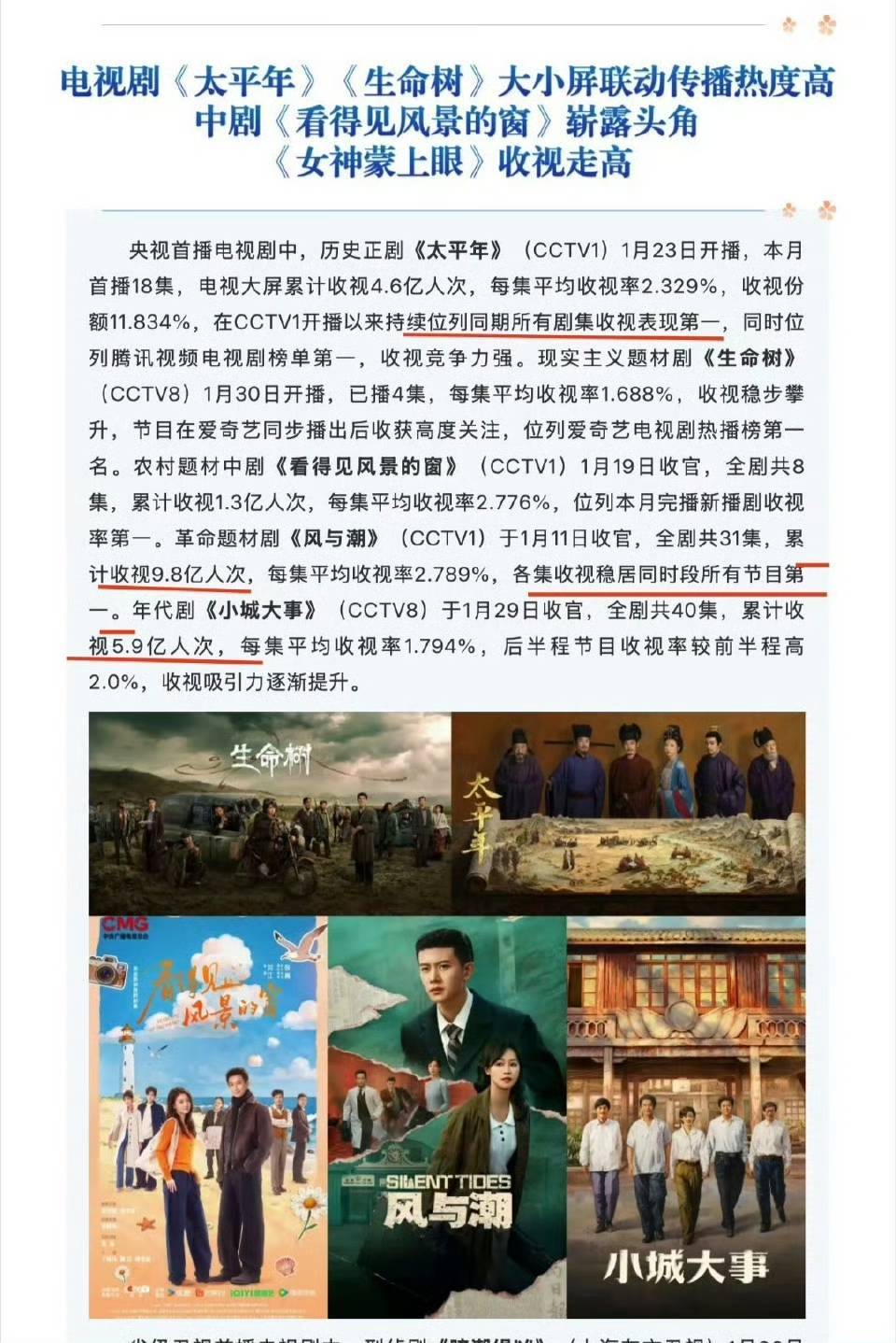《风与潮》CVB平均收视率2.8左右,收视人次9.8亿,这个成绩绝对是亮眼的,任嘉伦一年两爆,且口碑也非常好,就非常难得!