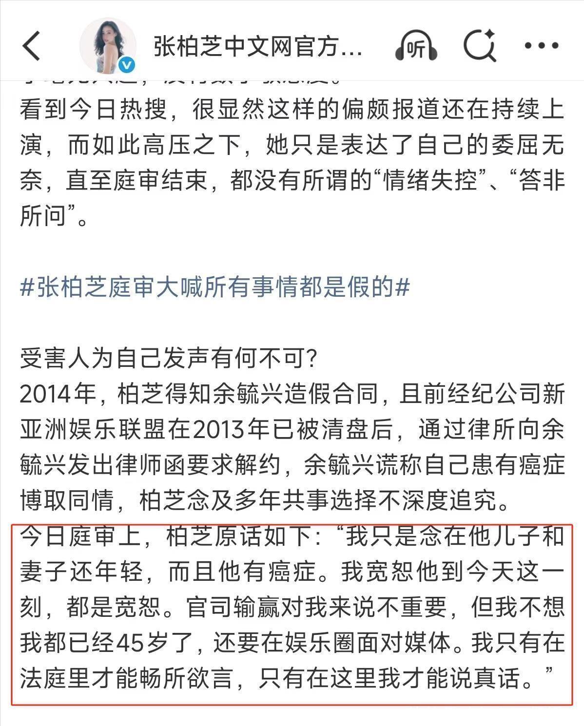 可能是这次上诉一结束,她的心情就轻松了许多,思路也变得更清晰了。面对律师的辩解,她也能条理分明地做出反驳。其实她曾说过:“赢不赢官司对我而言不是关键,但我不想我都已经45岁了,还得在娱乐圈面对媒体。我只有在法庭上,才能毫无顾忌地表达自己,只有在这里我才能讲实话。”