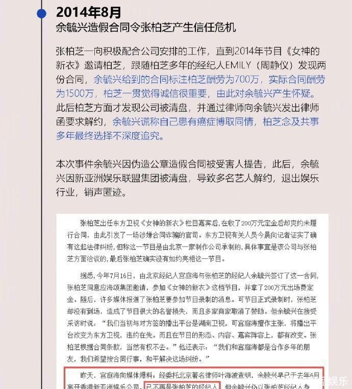 没想到公司在13年第出点事,她那会儿还不知道,依旧在为公司挣着钱。直到后来,她一看到收到综艺的邀约,才发现公司给的酬劳和实际拿到的不一样,才意识到原来公司已经被清算了。